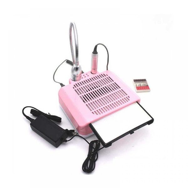Εργαλείο Εξοπλισμού Νυχιών – Τροχός , Συλλέκτης σκόνης και φωτιστικό – 60W – PRO 3-1 Pink