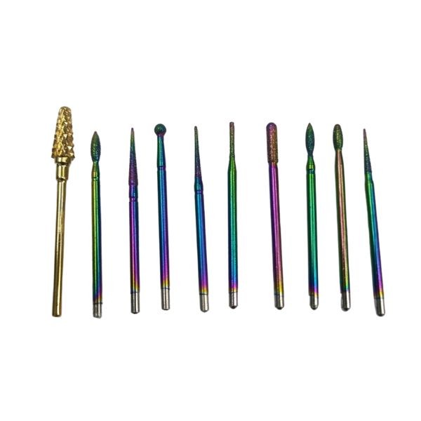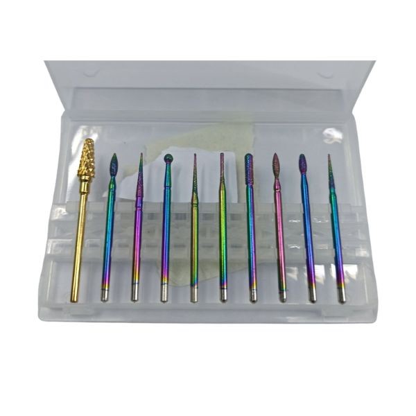 Φρέζες Rainbow για Τροχό Νυχιών Σετ 10 τεμαχίων σε κασετίνα