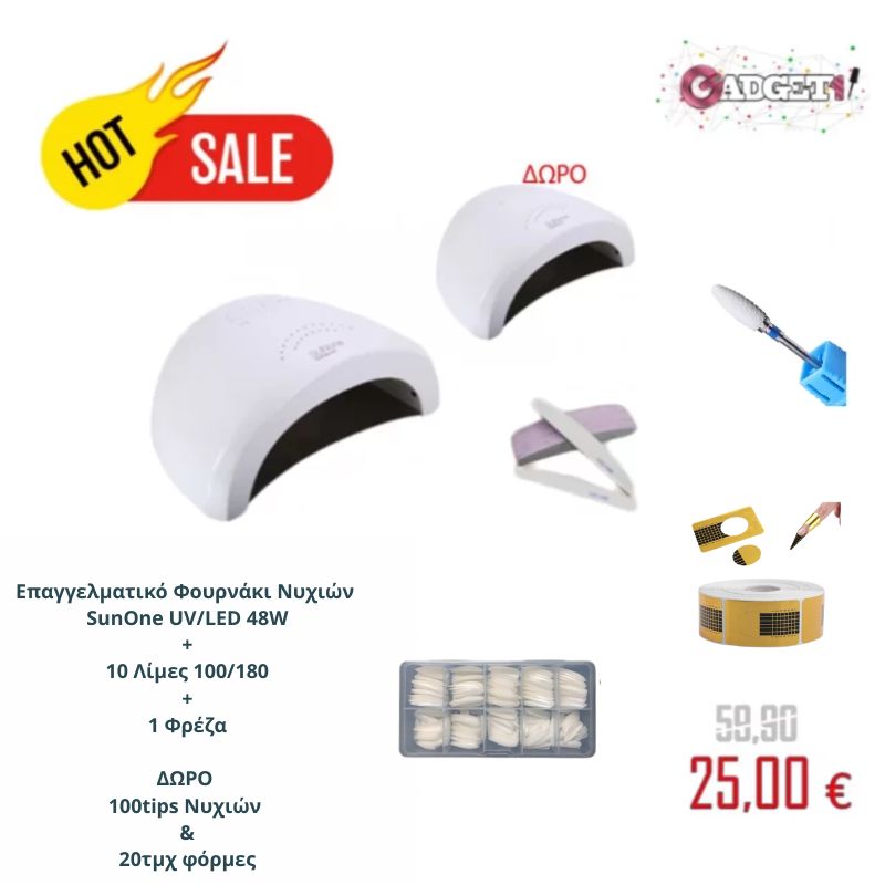 Bundle 78 | 1+1 Επαγγελματικό Φουρνάκι Νυχιών SunOne UV/LED 48W & 10 Λίμες & 1 Φρέζα & ΔΩΡΟ 100tips Νυχιών και 20τμχ Φόρμες Νυχιών